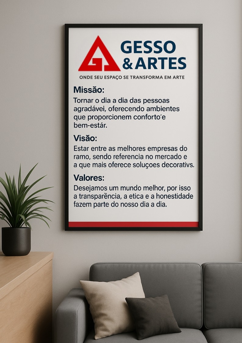A Gesso & Artes nasceu com o propósito de oferecer mais do que serviços de gesso: entregamos soluções que valorizam cada detalhe do seu ambiente. Atuamos com forros, sancas, divisórias, drywall e projetos sob medida, sempre com foco na excelência do acabamento.